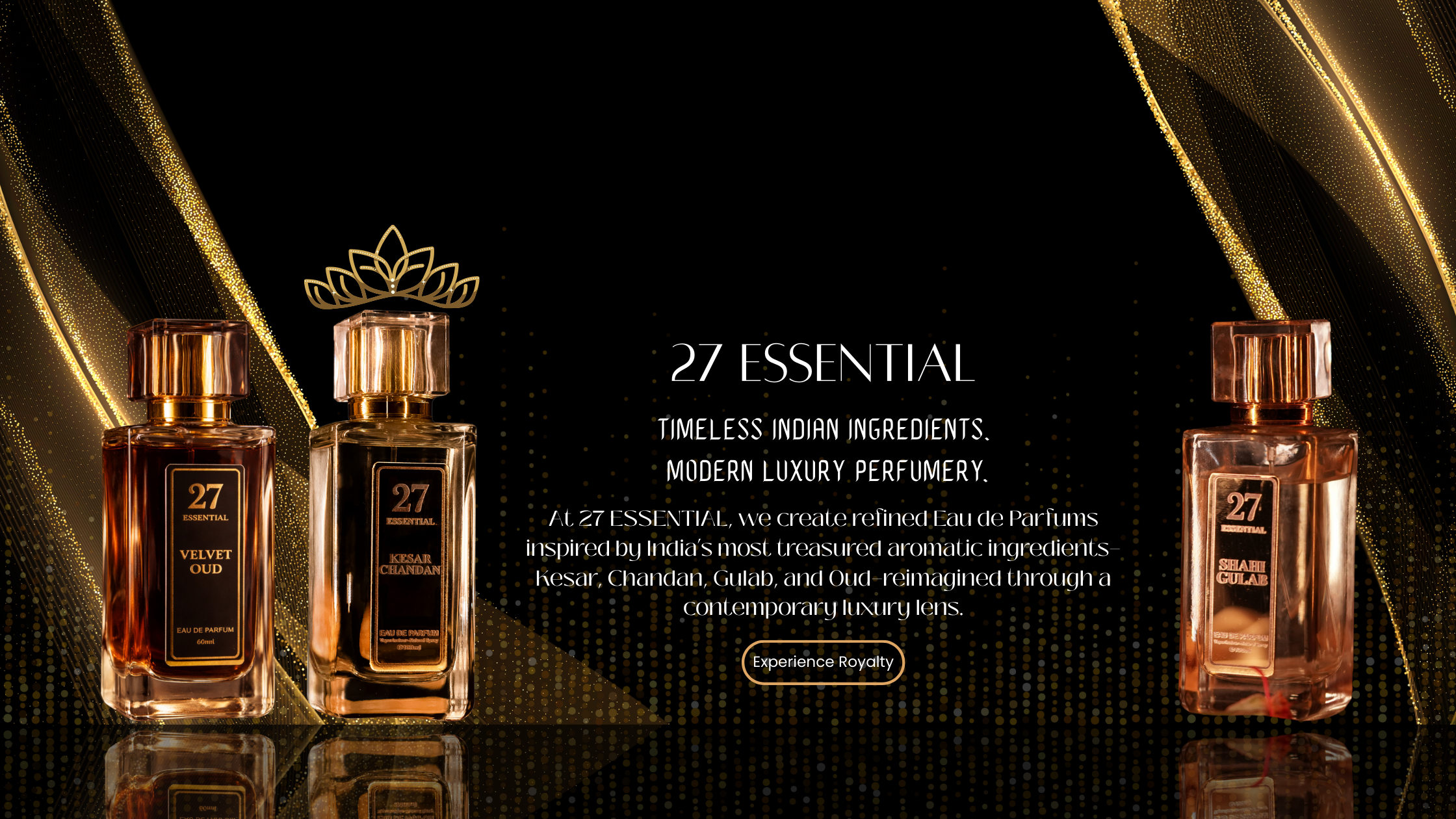 27 ESSENTIAL was born from a deep reverence for India’s natural aromatic legacy and a desire to present it to the world in a refined, modern form. Rooted in traditional fragrance craftsmanship and elevated by contemporary perfumery techniques, our creations are designed to feel timeless, elegant, and memorable. Every composition is thoughtfully balanced, long-lasting, and crafted to become a personal signature.