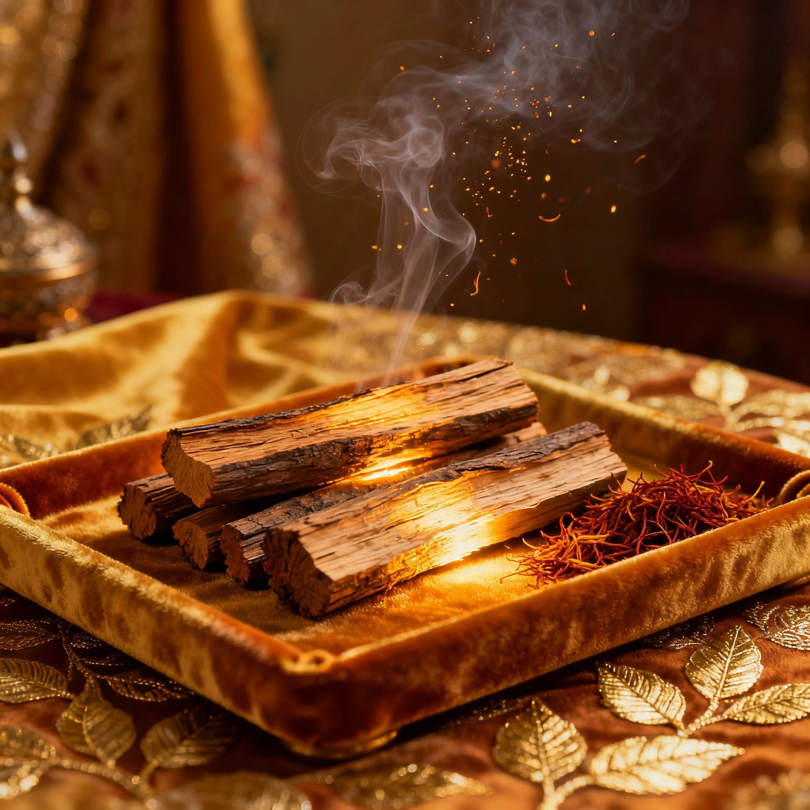 Top notes of saffron, resting on a creamy sandalwood heart, finished with soft floral and amber undertones. -